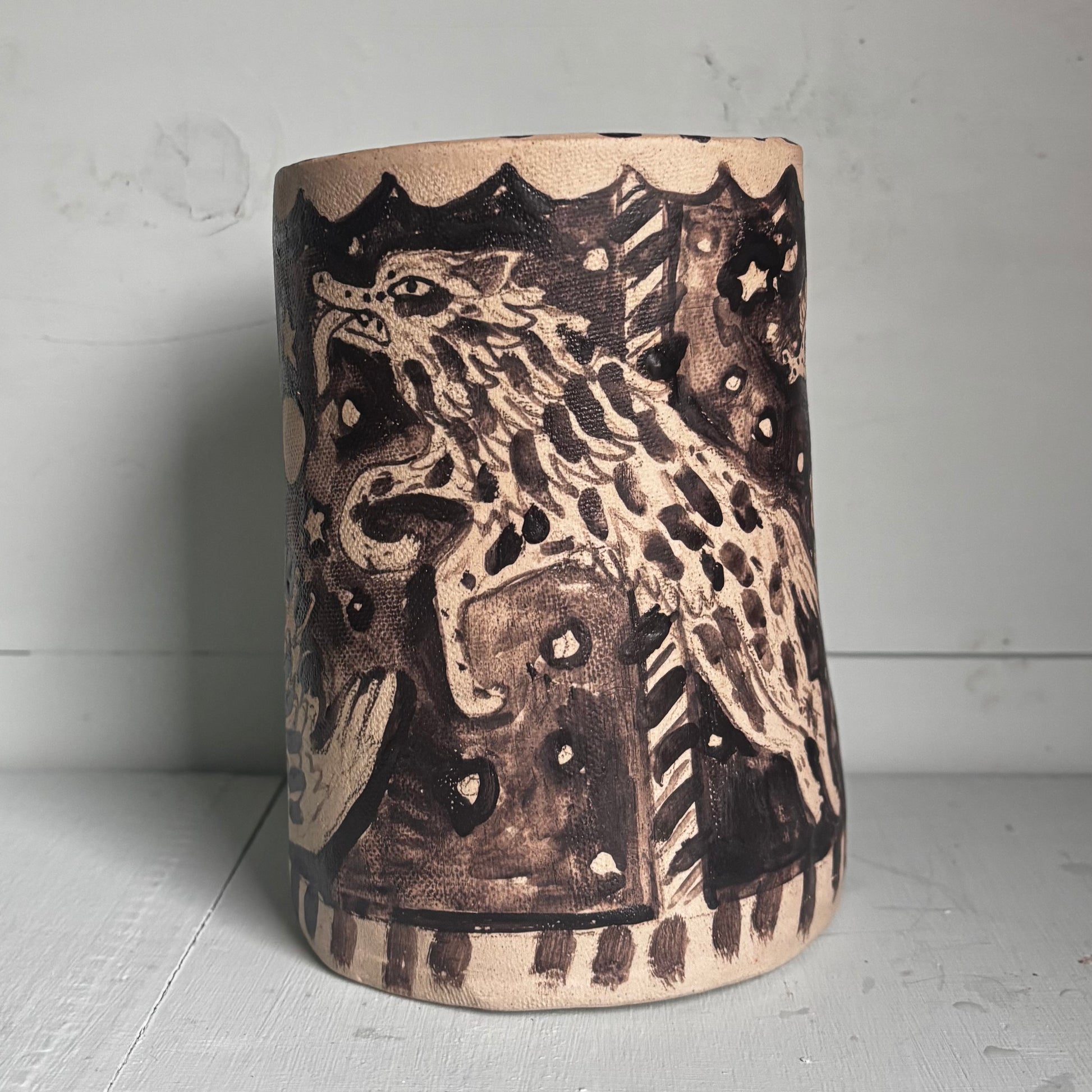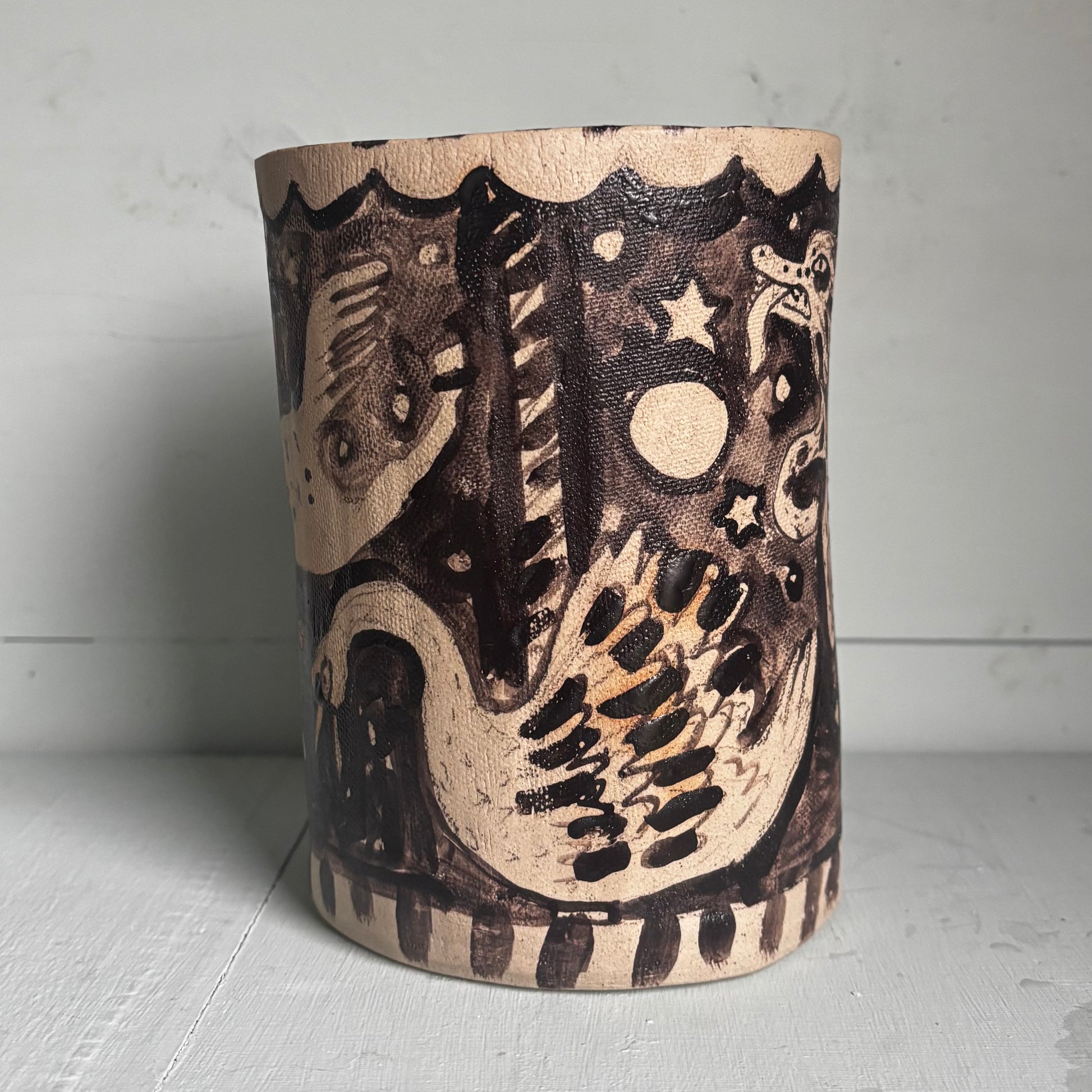 One-of-kind piece, hand built and illustrated.