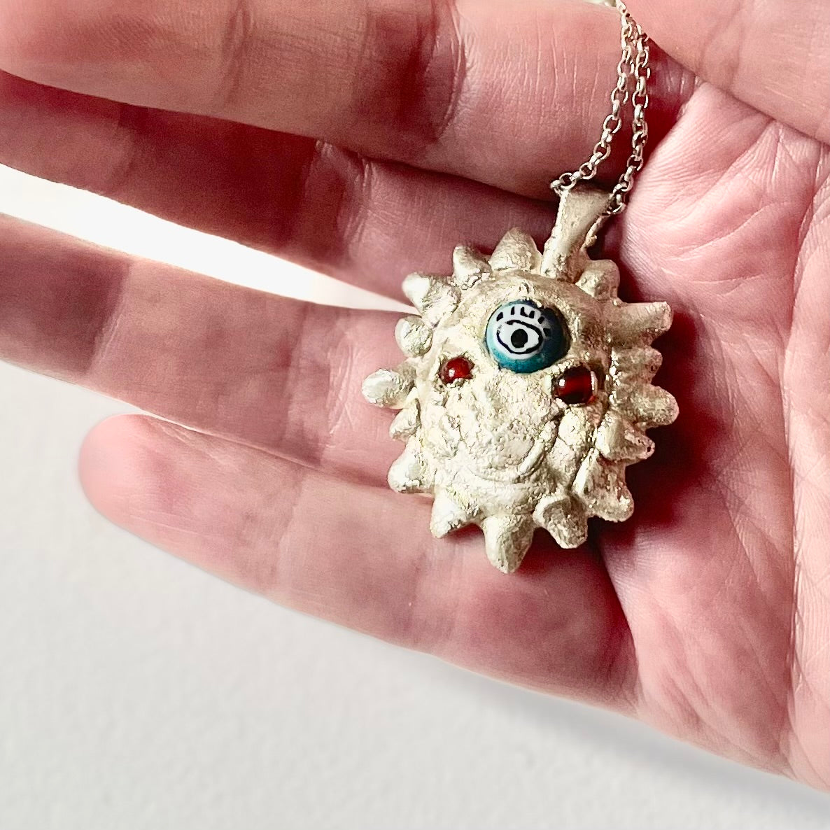 fine silver, hand made glass eyes.